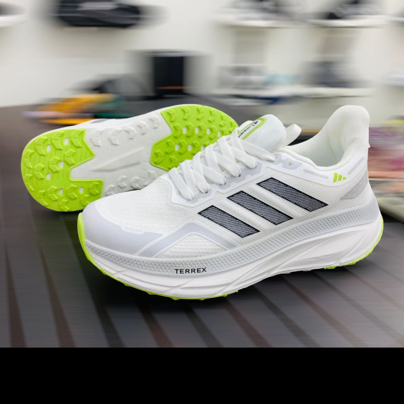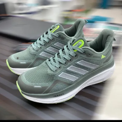 Conquer every terrain with the Adidas Terrex Running Shoes — engineered for outdoor athletes and urban explorers alike. Featuring a breathable gray mesh upper, reinforced with synthetic overlays, these shoes deliver lightweight support and durability. Neon green accents and bold white detailing add a fresh, energetic look, while the cushioned sole absorbs impact for smooth strides on any surface. The rugged outsole ensures reliable grip, whether you're trail running or navigating city streets. With the iconic Adidas logo and TERREX branding, this pair blends style with serious performance. Available now at — your destination for authentic athletic gear.