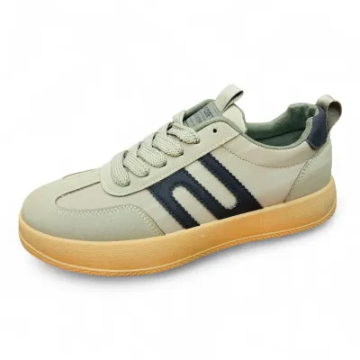Beige & Navy Sneakers — Padded Comfort with Gum Sole | Footmax.com.bd