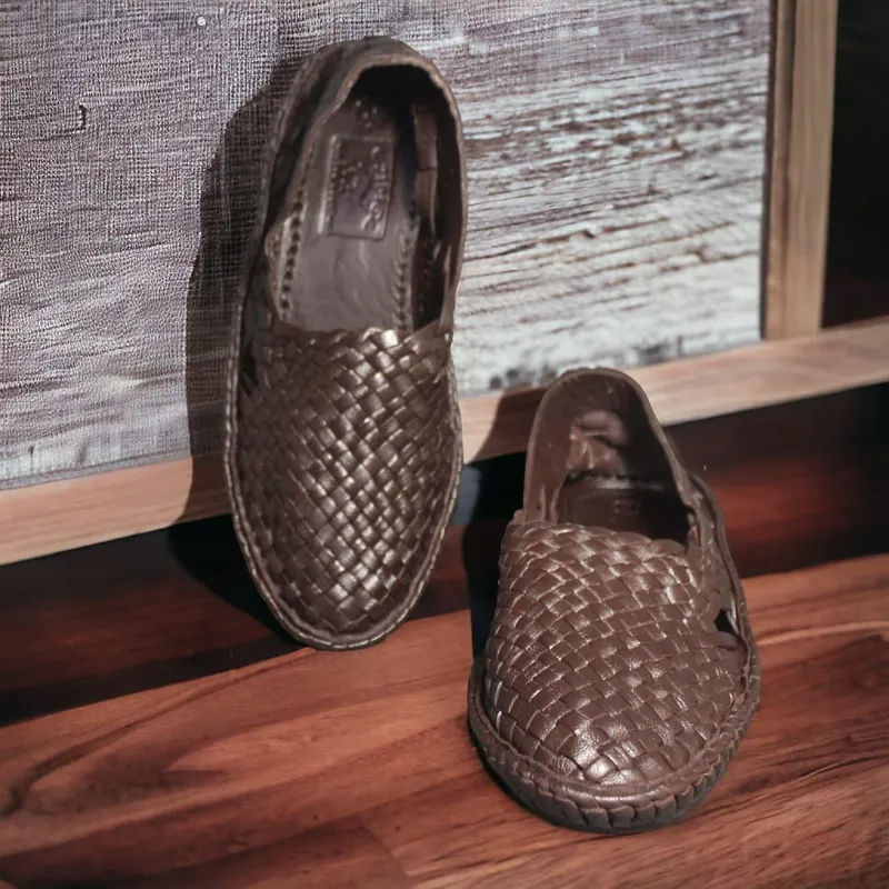 available in classic black and brown. Each pair is meticulously handmade by skilled artisans, combining time-honored craftsmanship with premium leather for a unique and authentic look. Designed for comfort, these Mojaris feature a durable sole and a snug fit, ideal for festive occasions, casual outings, or adding a touch of heritage to your everyday wear. Their detailed stitching and traditional design showcase the artistry of Kolhapuri footwear, making them an essential for those who value both style and cultural heritage.