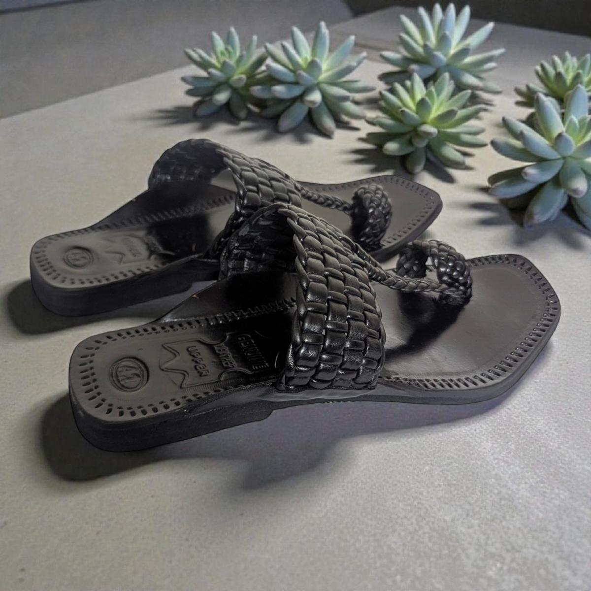 • Upper: Handwoven genuine leather straps
