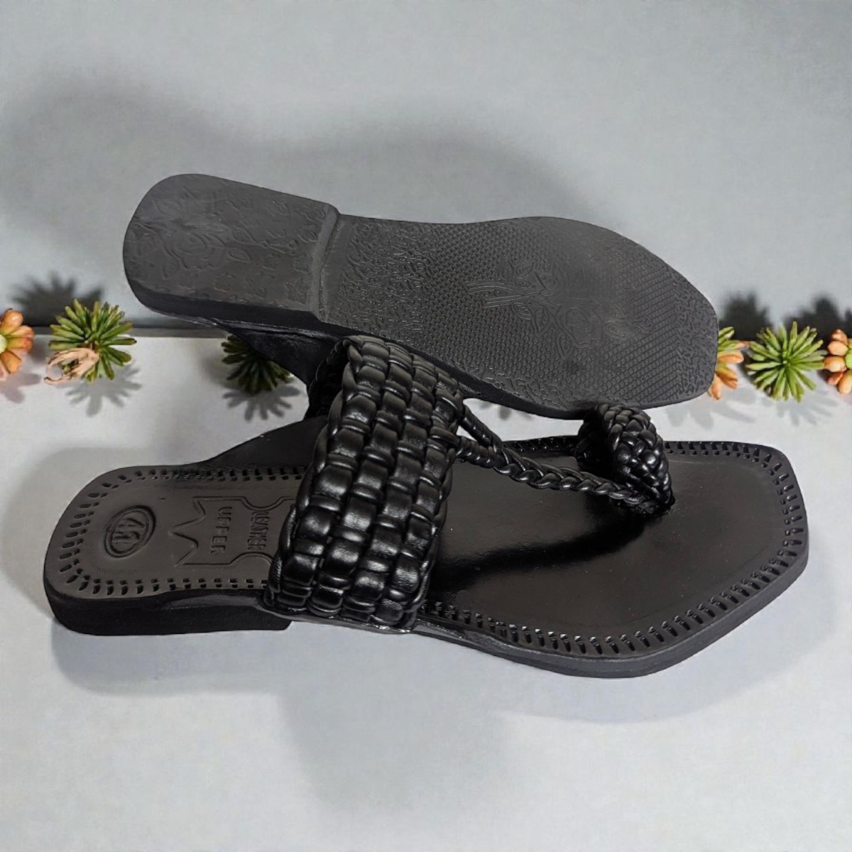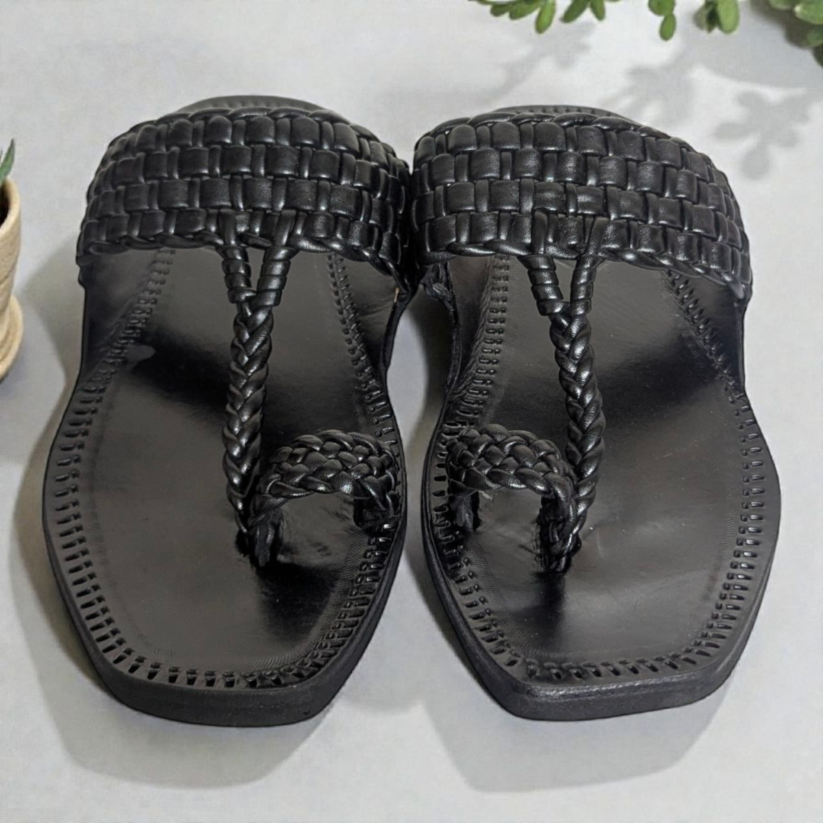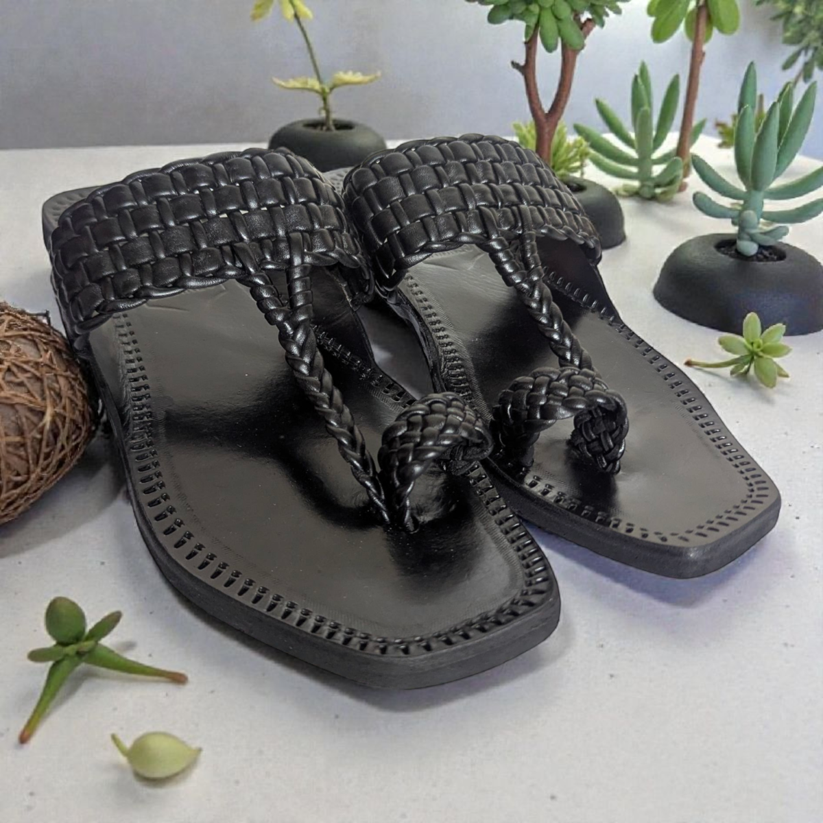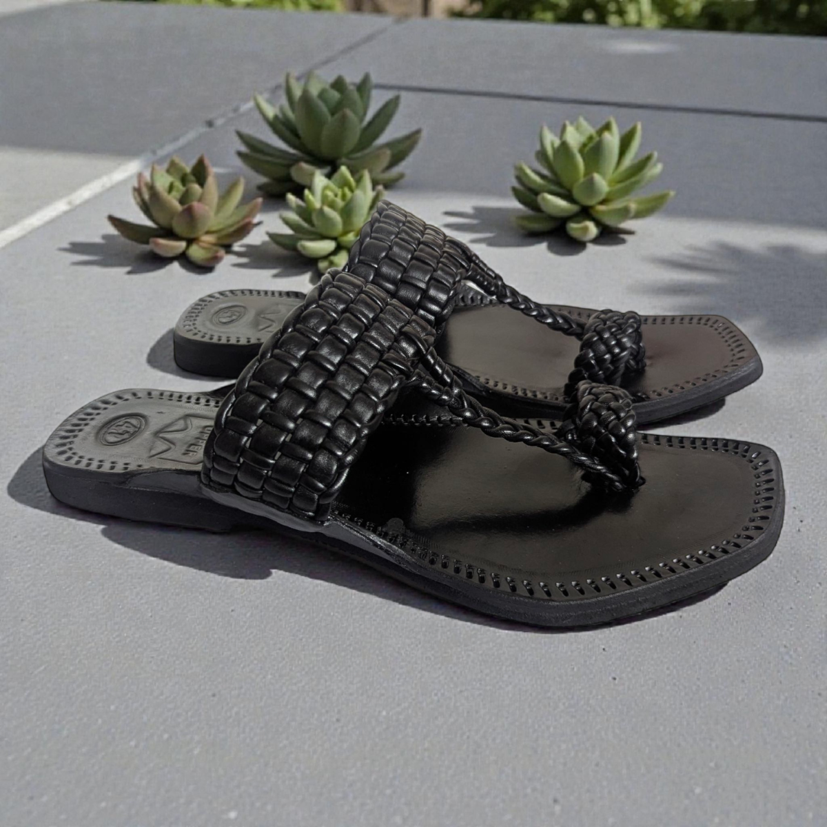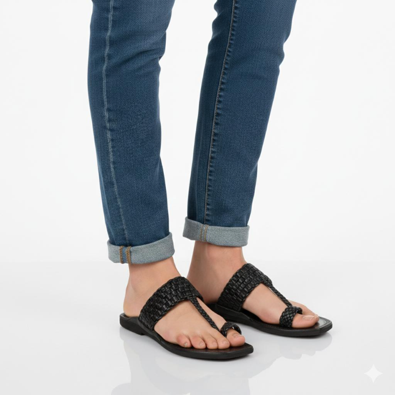 • Details: Toe loop, braided straps, handcrafted finish