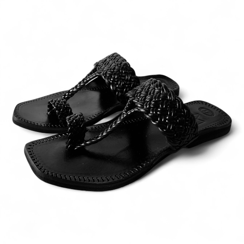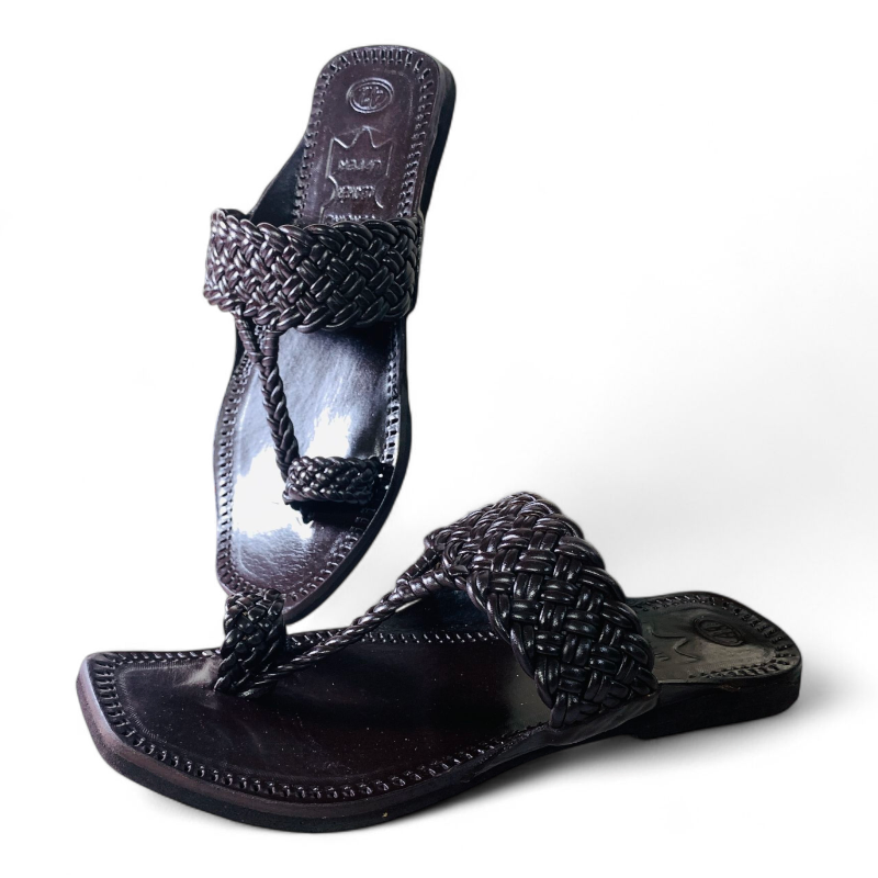 Black Kolhapuri Chappals Handcrafted Leather Sandals