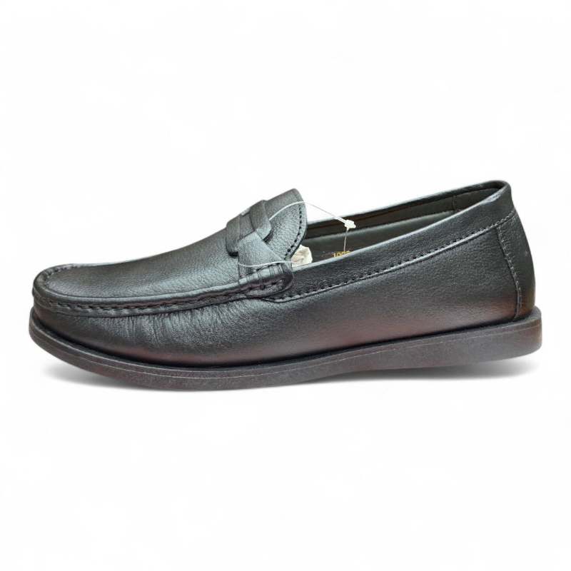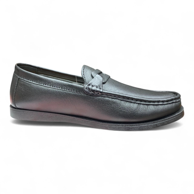 Black Leather Loafers — Sleek Moc-Toe Design with Braided Strap | Footmax.com.bd