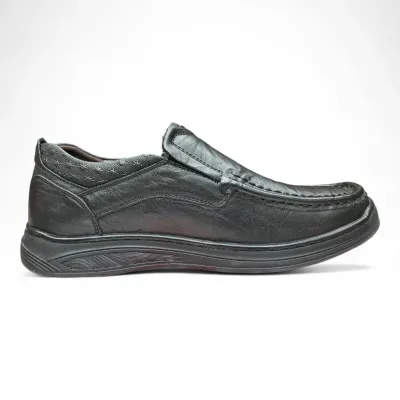 Black Leather Slip-On — Classic Comfort with Moc-Toe Stitching | Footmax.com.bd