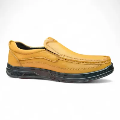 Discover timeless style with Footmax Black Leather Slip-On Shoes — designed for men who value comfort, simplicity, and everyday elegance. Featuring a moc-toe stitched front and a textured upper near the ankle, this slip-on blends casual ease with semi-formal polish. The cushioned sole offers soft support for long hours of wear, while the embossed “FASHION CLASSIC” branding adds a refined touch. A flexible rubber outsole ensures grip and durability across indoor and outdoor surfaces. Ideal for office, travel, or weekend outings, this shoe delivers a secure fit without laces and pairs effortlessly with trousers, denim, or ethnic wear. Available in multiple sizes with fast delivery across Bangladesh, easy returns, and Footmax’s trusted quality checks — your go-to choice for understated style and reliable comfort.