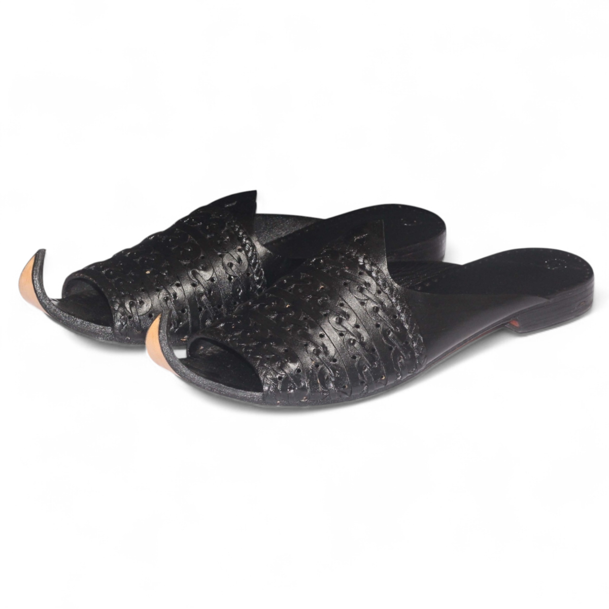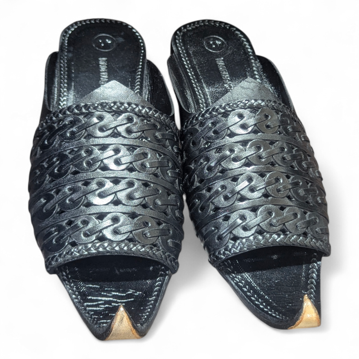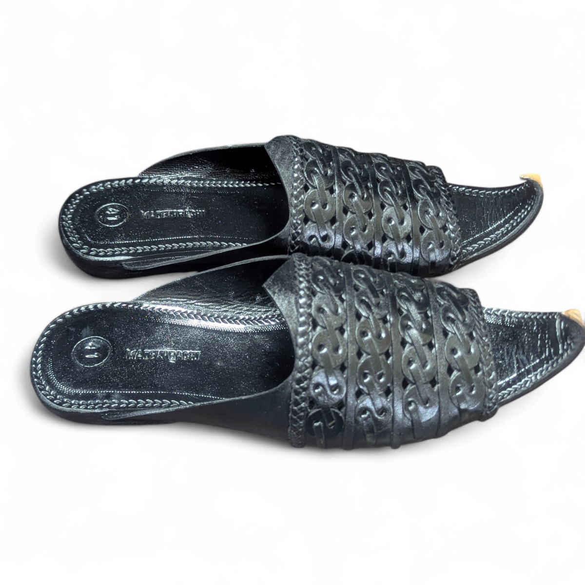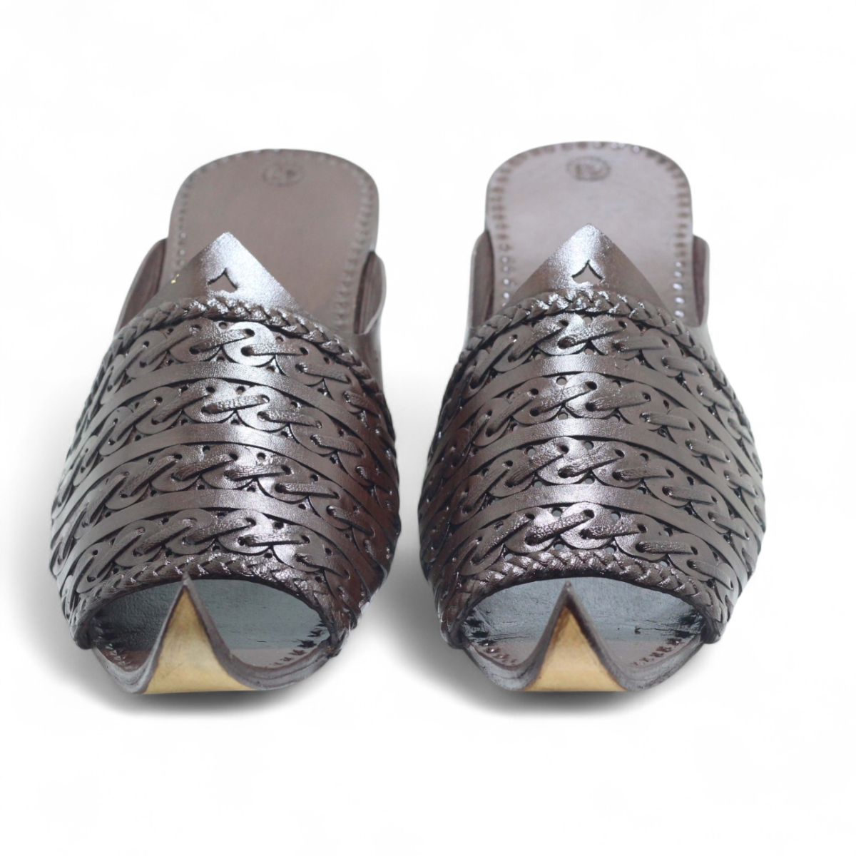 Brown Leather Peshawari Chappal — Curled Toe Handcrafted Design