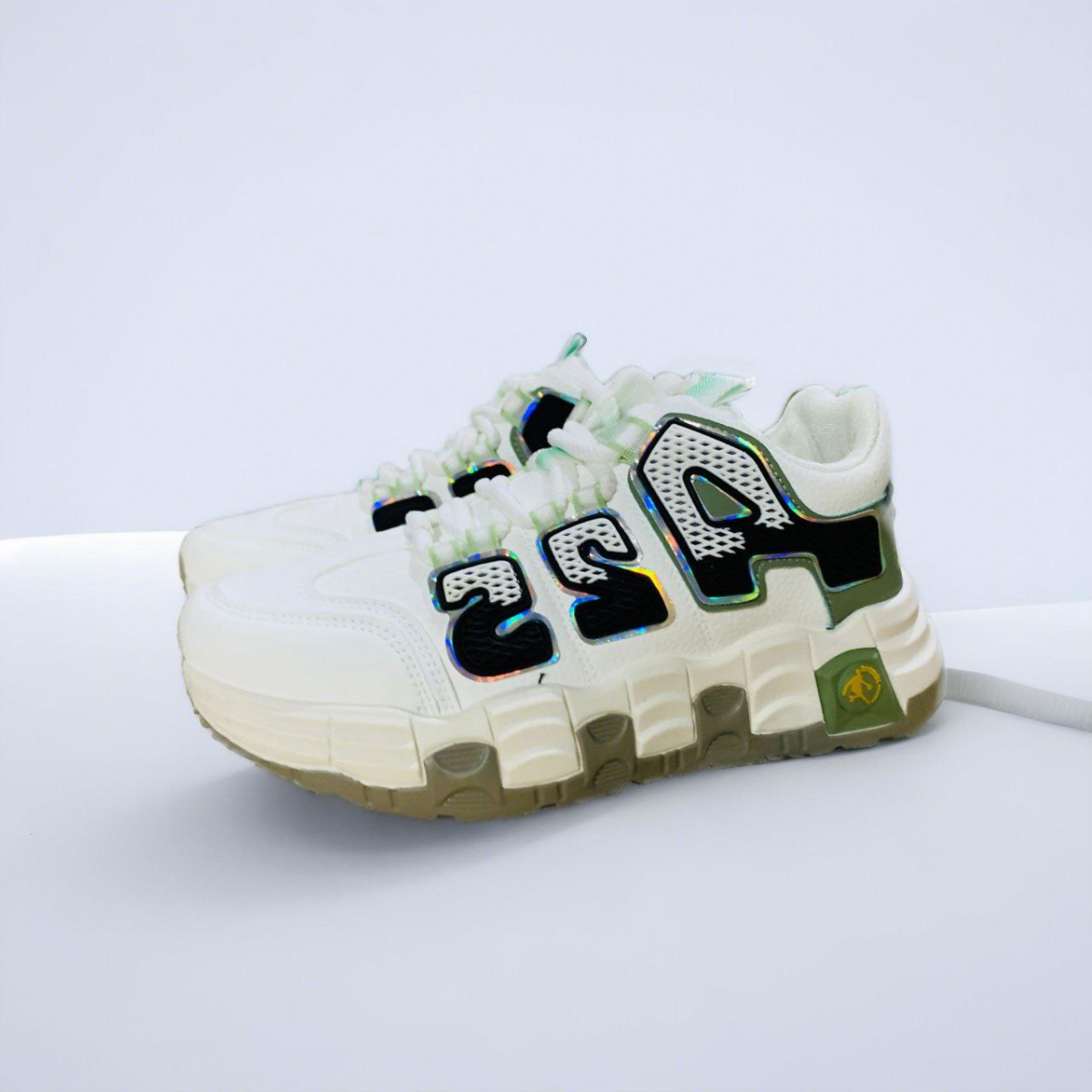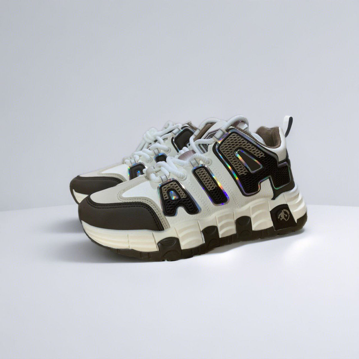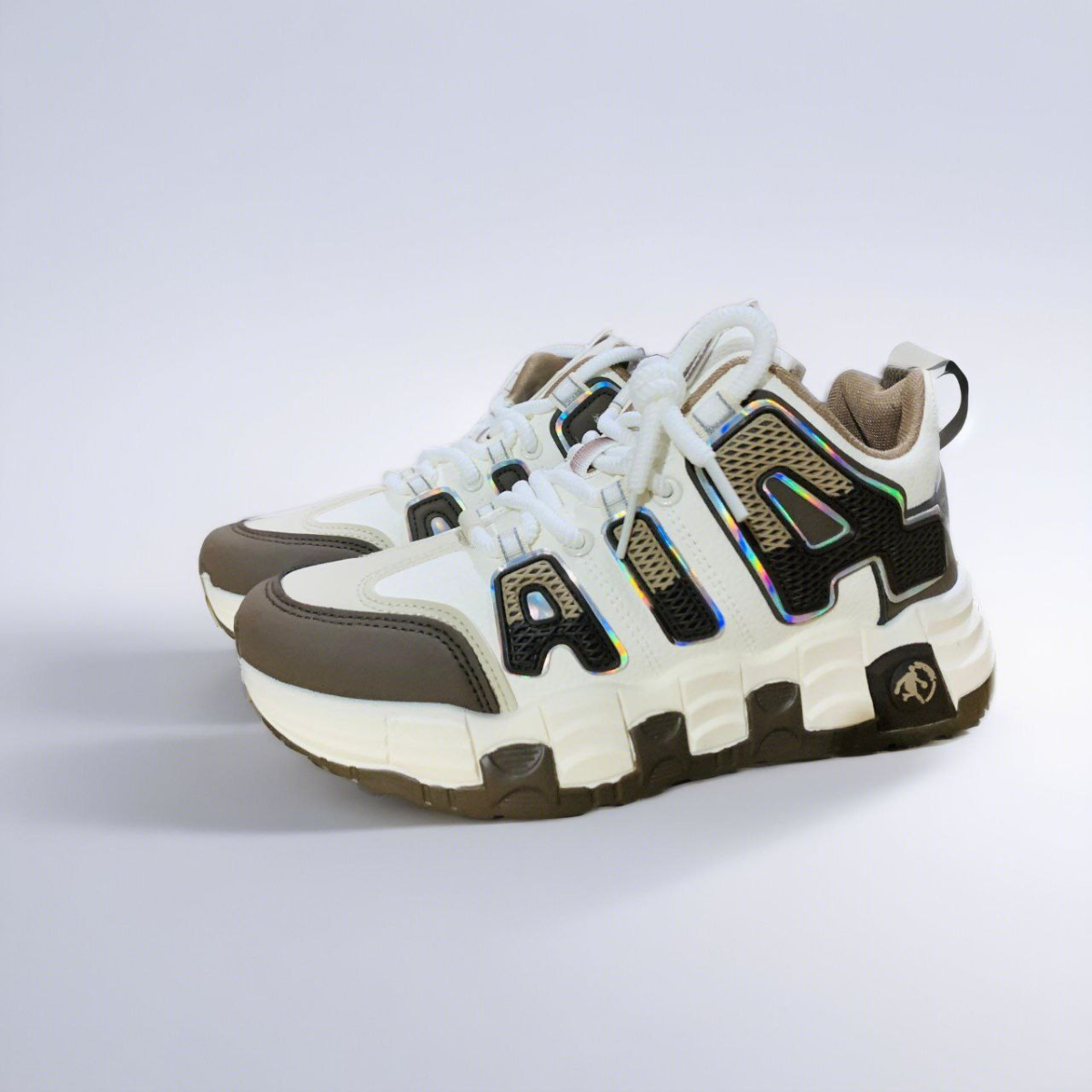 Chunky White Sneakers with Holographic AIA Branding