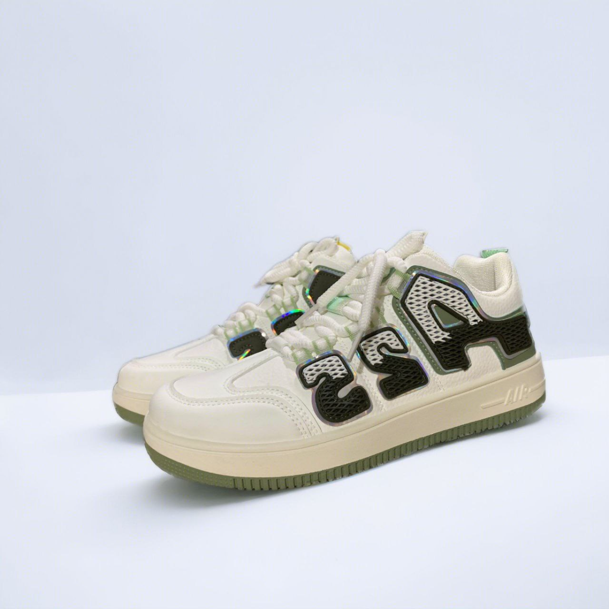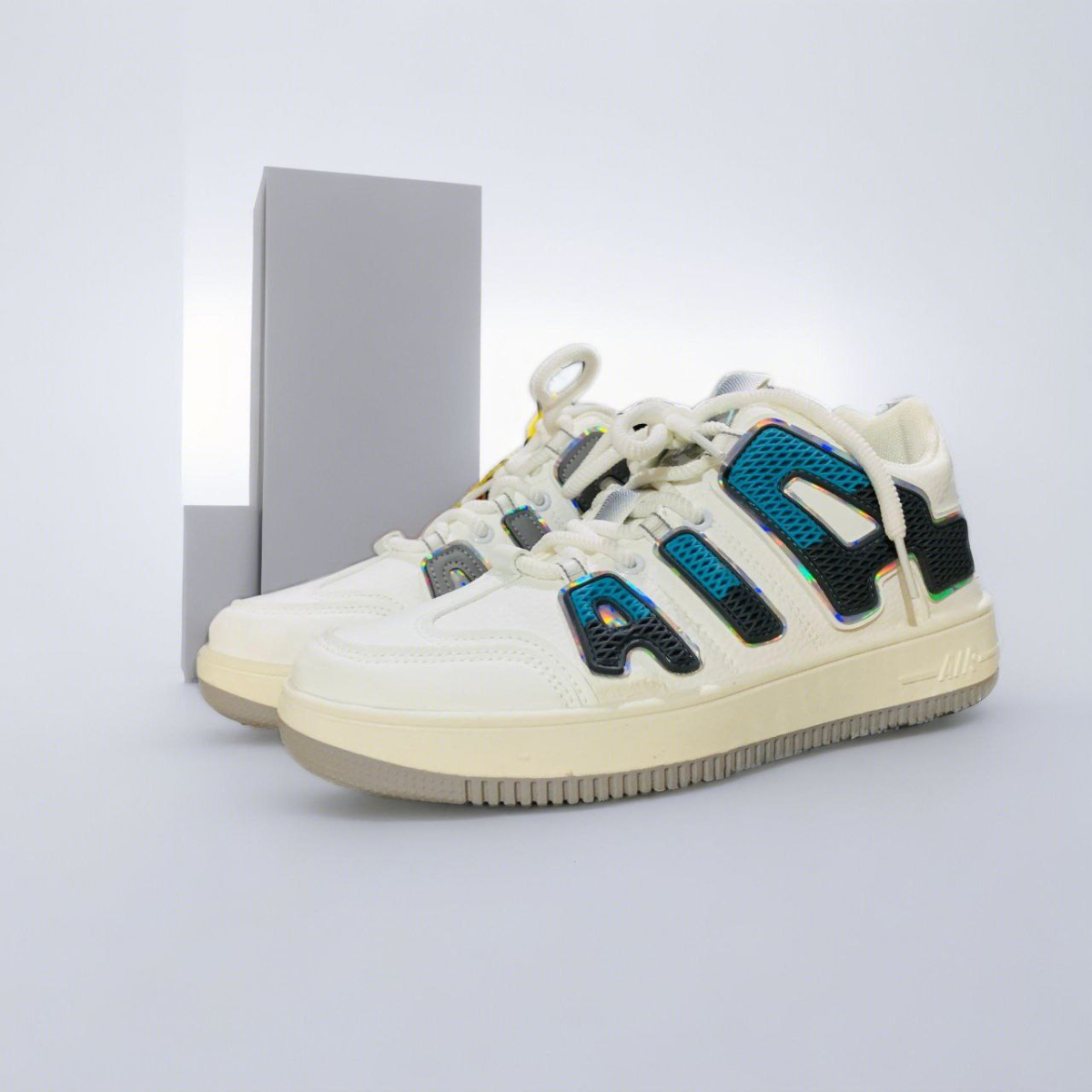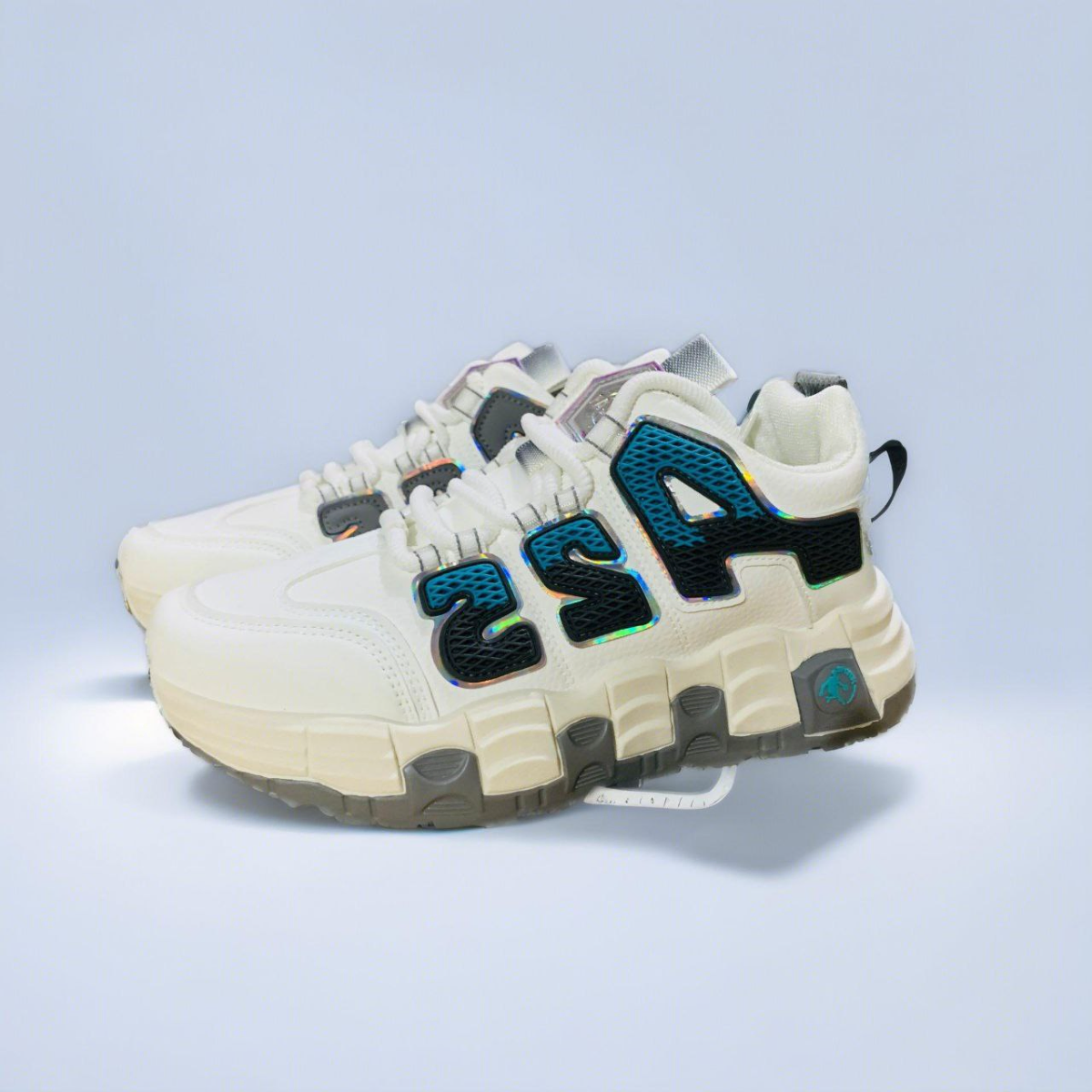 Chunky White Sneakers with Holographic AIA Branding