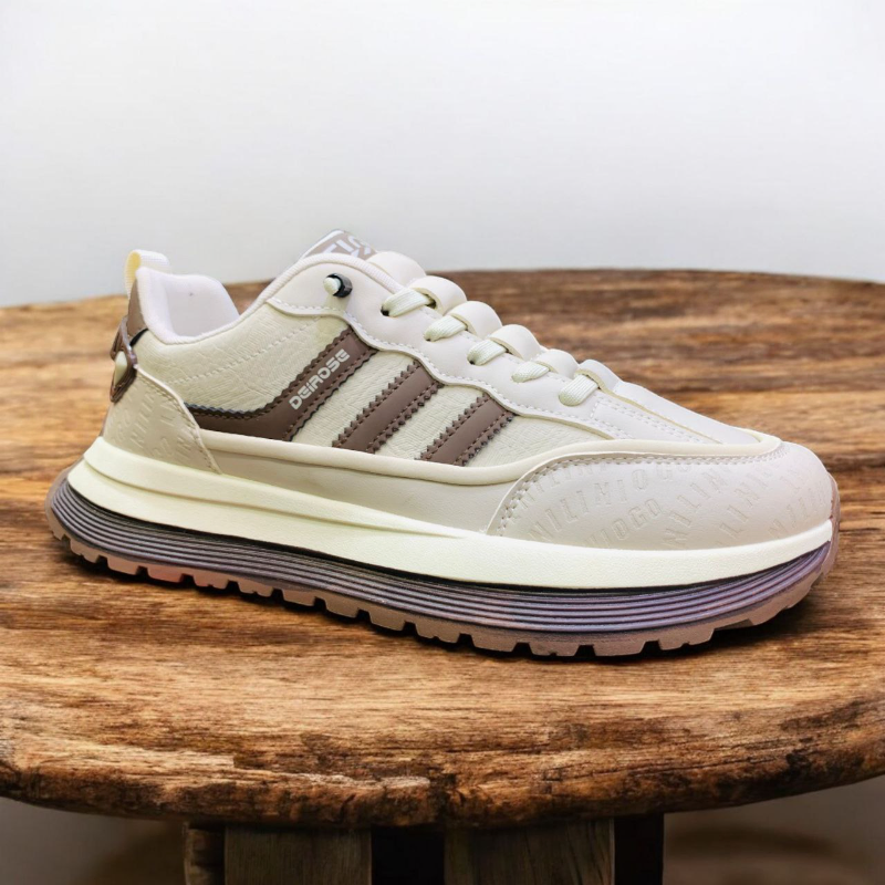 Stay active in style with the DEIMROSE Cream Running Sneakers — built for performance, comfort, and modern fashion. These lightweight sneakers feature a breathable synthetic upper, cushioned sole, and anti-slip rubber outsole for maximum stability and support. Perfect for gym, travel, or casual wear, this versatile design keeps your feet cool and comfortable all day long. With its neutral beige tones and contemporary stripes, it matches any outfit effortlessly. Get the perfect blend of function and fashion — available now at Footmax.com.bd with fast nationwide delivery.