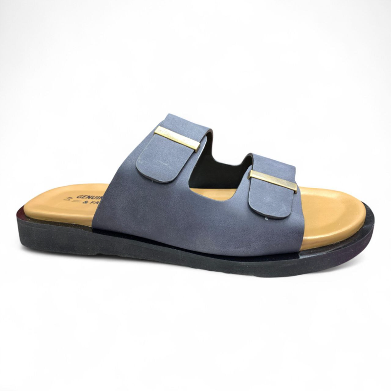 Dark Blue Buckle Strap Sandals Casual Slip-On Comfort