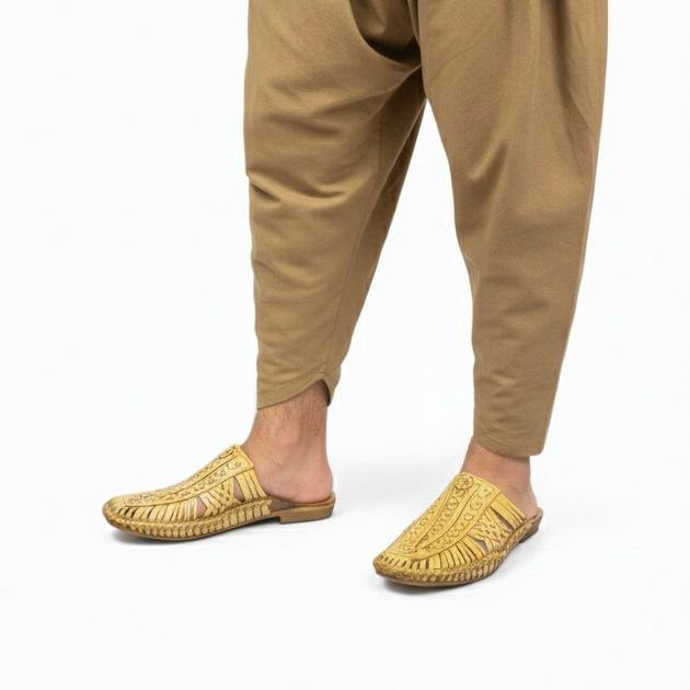 • Handcrafted Woven Leather Upper: Showcases traditional Desi craftsmanship.