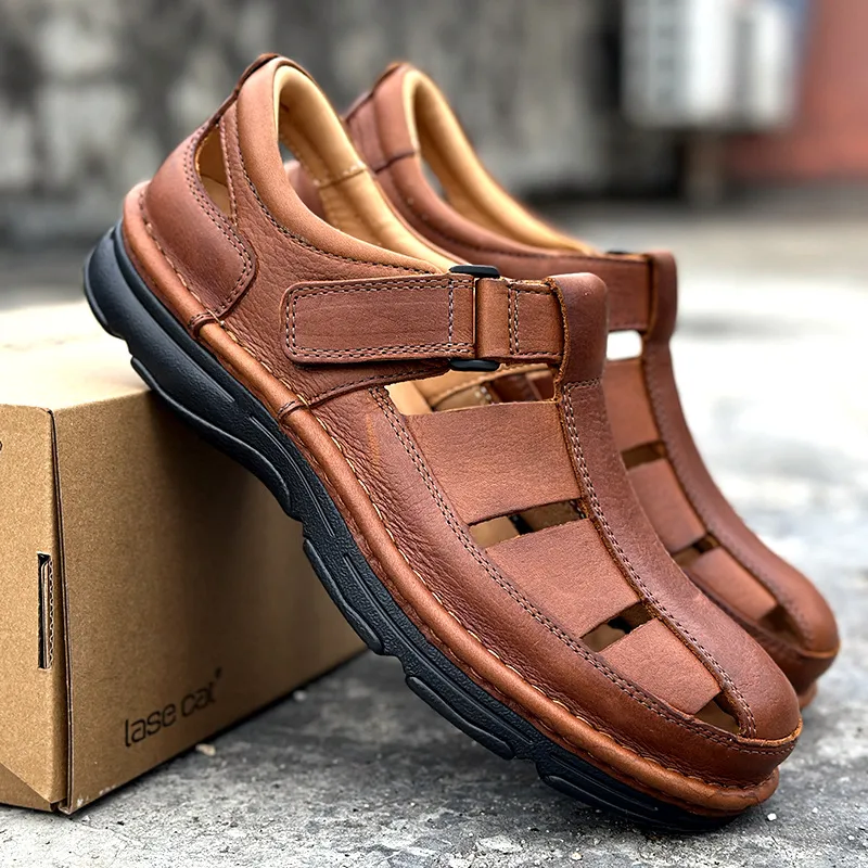 Foreign Trade Men's Leather Sandals Handmade Cowhide Hollow Casual Sandals Leather Breathable Lightweight Non-slip