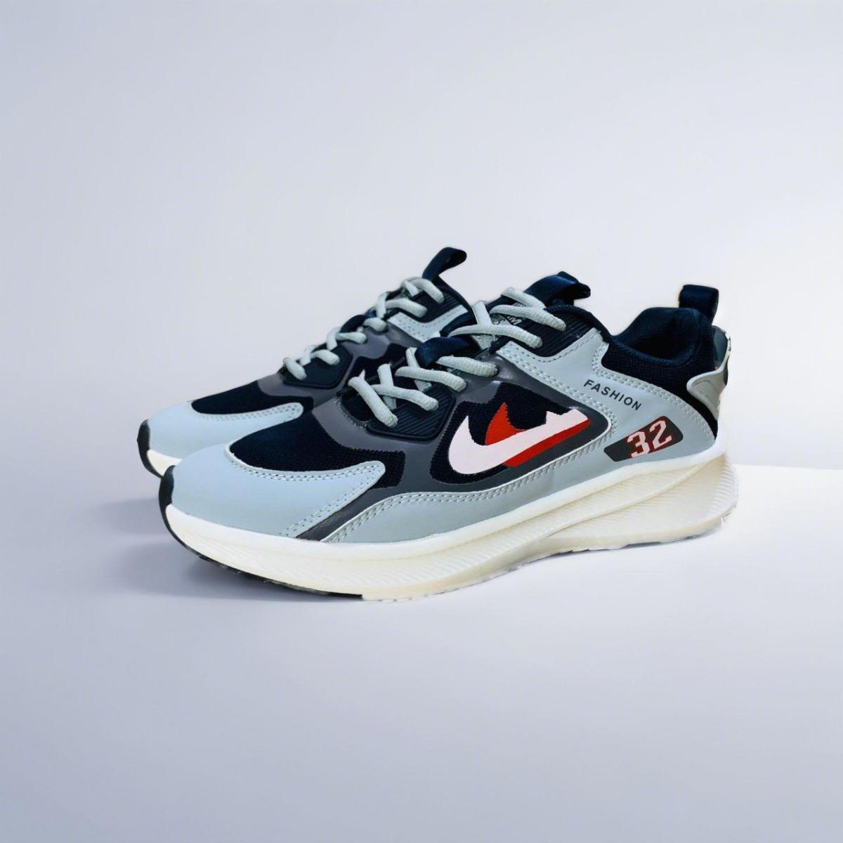 Gray-Green Fashion Sneakers—Breathable Mesh & Bold 32 Branding