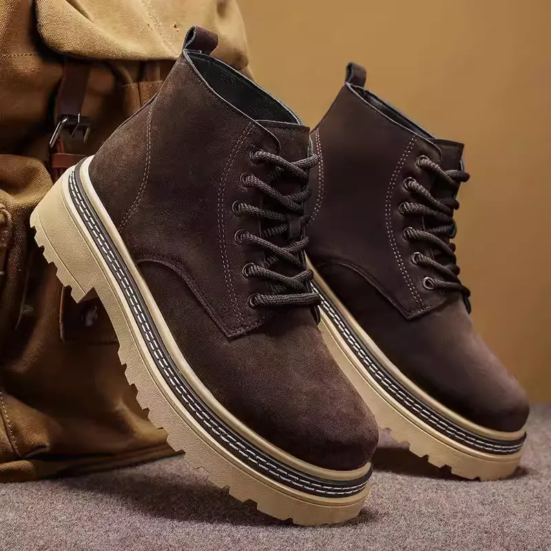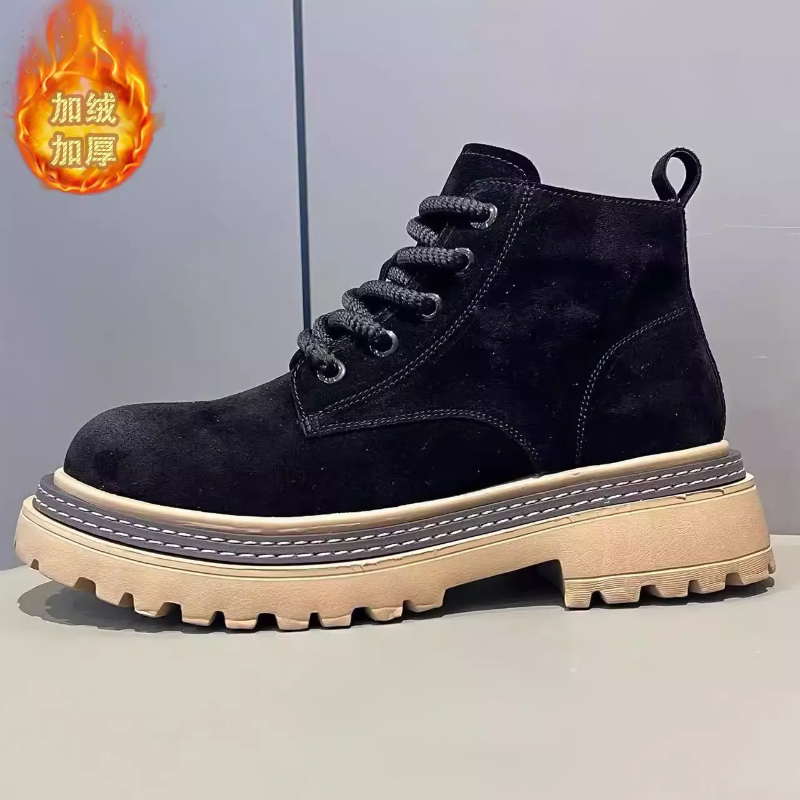 Martin British New Men's Shoes Non-Slip Thick Sole Versatile Workwear Retro Outdoor High-Top Fleece-Lined Large size
