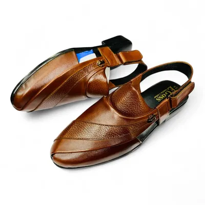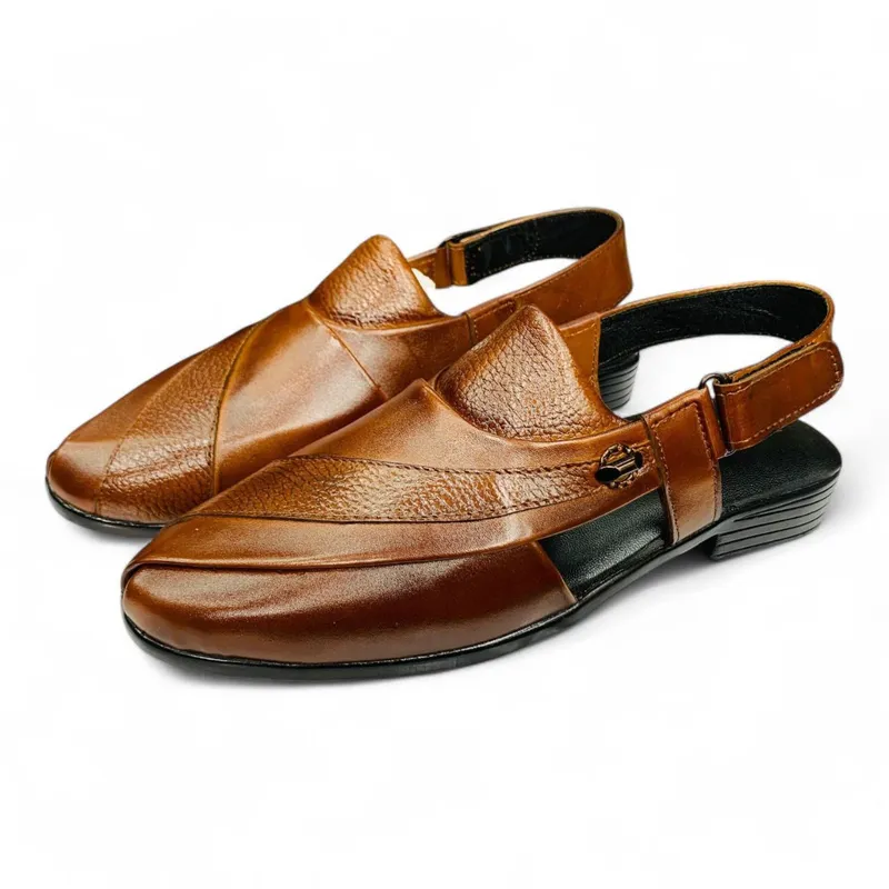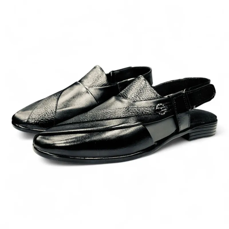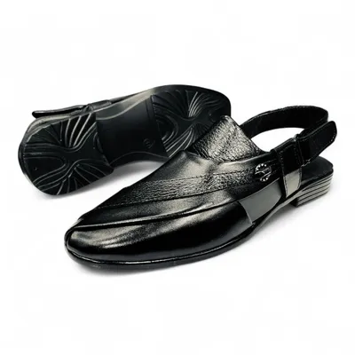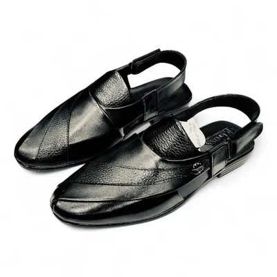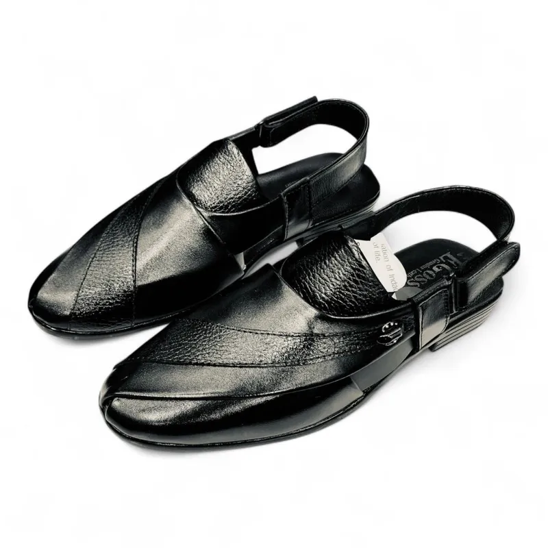 Men’s Black Leather Peshawari Sandals – Traditional & Stylish