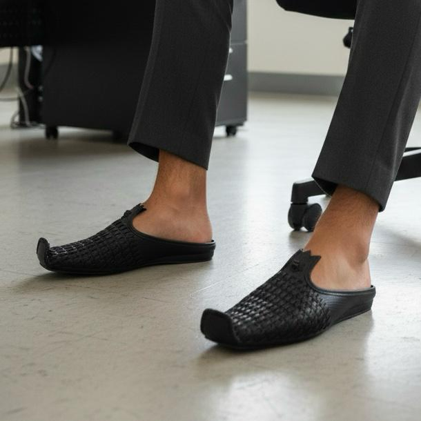 ✅ Handcrafted woven leather upper with a stylish traditional design