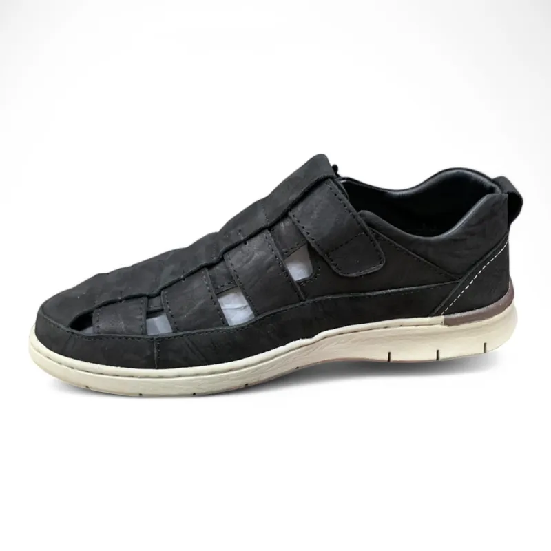 Experience ultimate comfort and a secure fit with these men’s brown comfort sandals. Perfect for everyday wear in Dhaka, Bangladesh, these sandals feature a soft brown upper with a unique woven strap design and cut-out details for enhanced breathability. The multiple adjustable hook-and-loop straps ensure a secure and personalized fit, while the cushioned insole provides all-day comfort. The lightweight construction and flexible outsole make them ideal for navigating the city or enjoying casual outings.