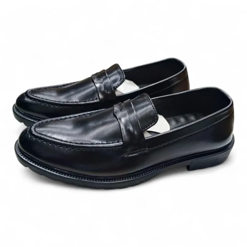Add timeless elegance to your wardrobe with these classic brown penny loafers for men — a perfect match of sophistication and everyday comfort. Crafted with a sleek PU leather upper, these loafers offer a polished look that’s ideal for office, formal events, or smart casual outings. The soft cushioned insole ensures maximum comfort, while the durable rubber outsole provides excellent stability and grip. Featuring a traditional slip-on design, they are easy to wear and remove without compromising on style. Lightweight and long-lasting, this pair is perfect for professionals, students, or anyone looking for a classy yet practical shoe option. Versatile and stylish, these loafers complement formal trousers, chinos, or even jeans. Available now at Footmax.com.bd — trusted for premium men’s footwear in Bangladesh.
