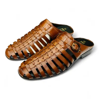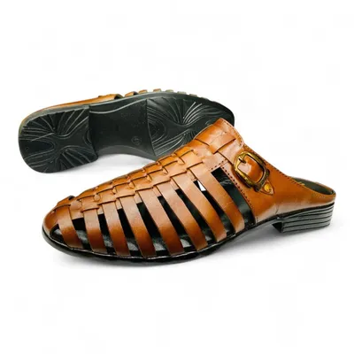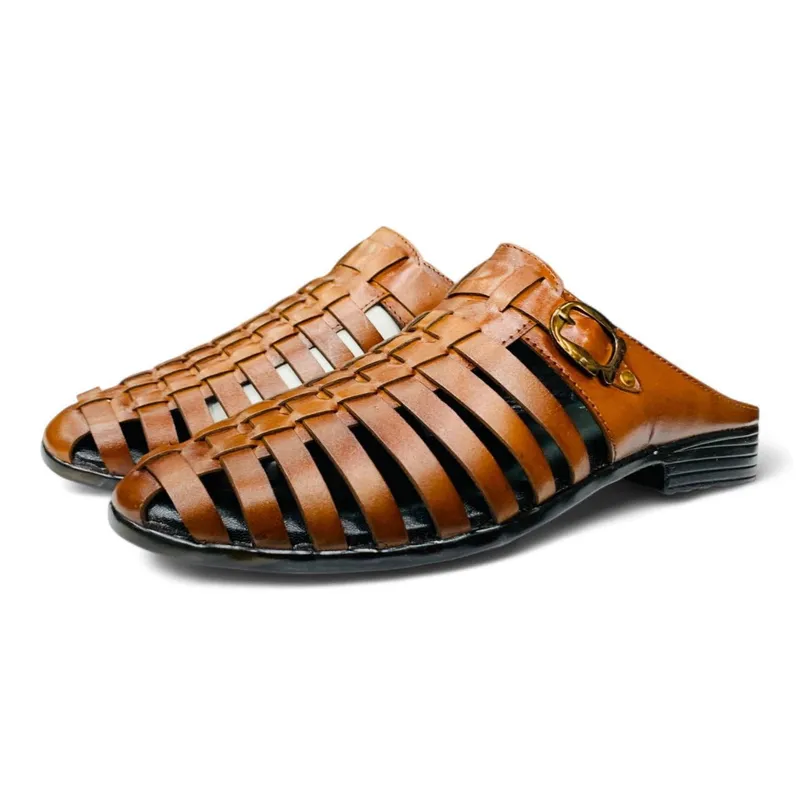 Men’s Brown Netted Leather Sandals – Classic Comfort & Style | Footmax.com.bd
