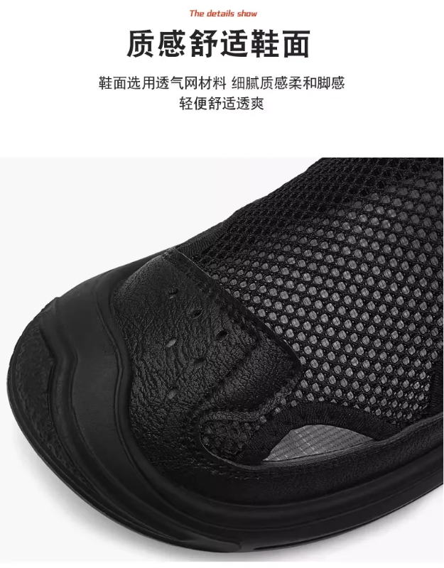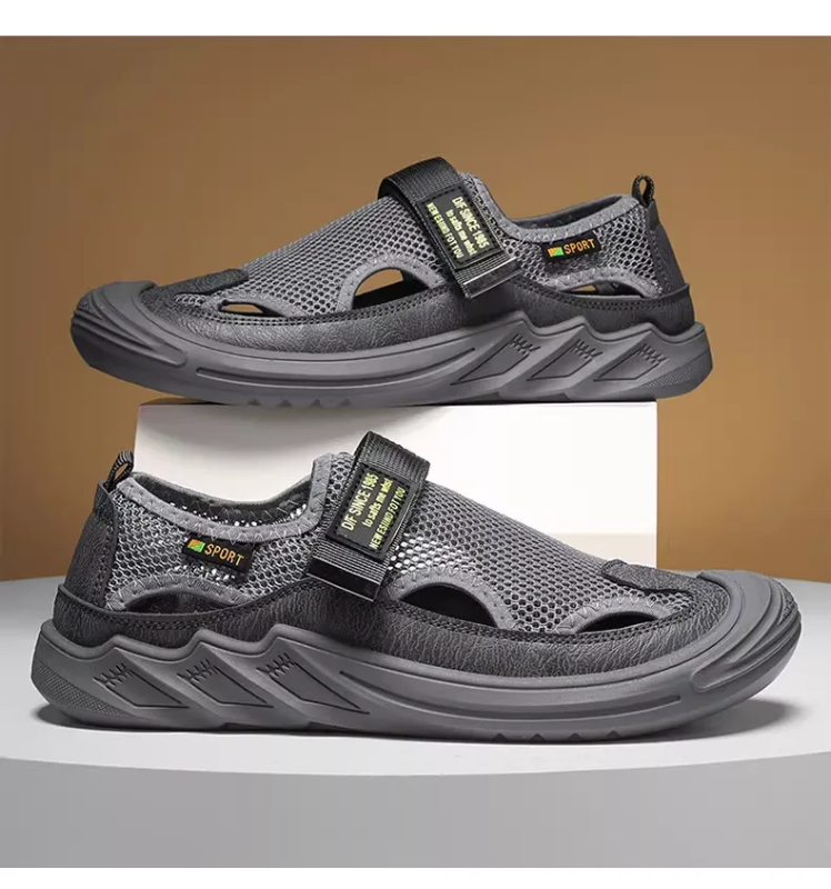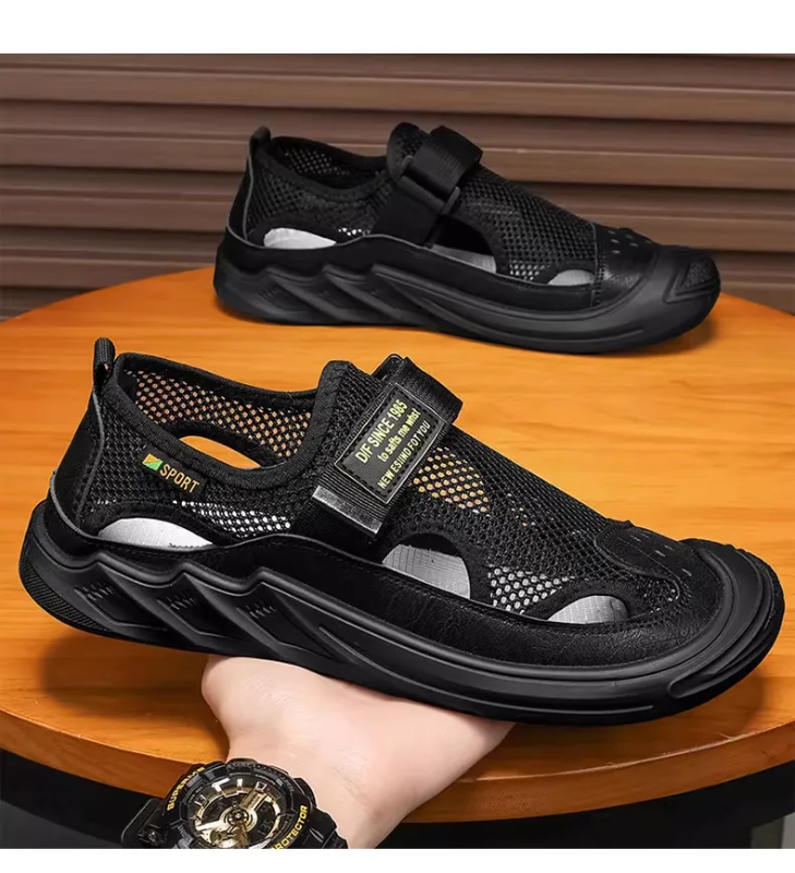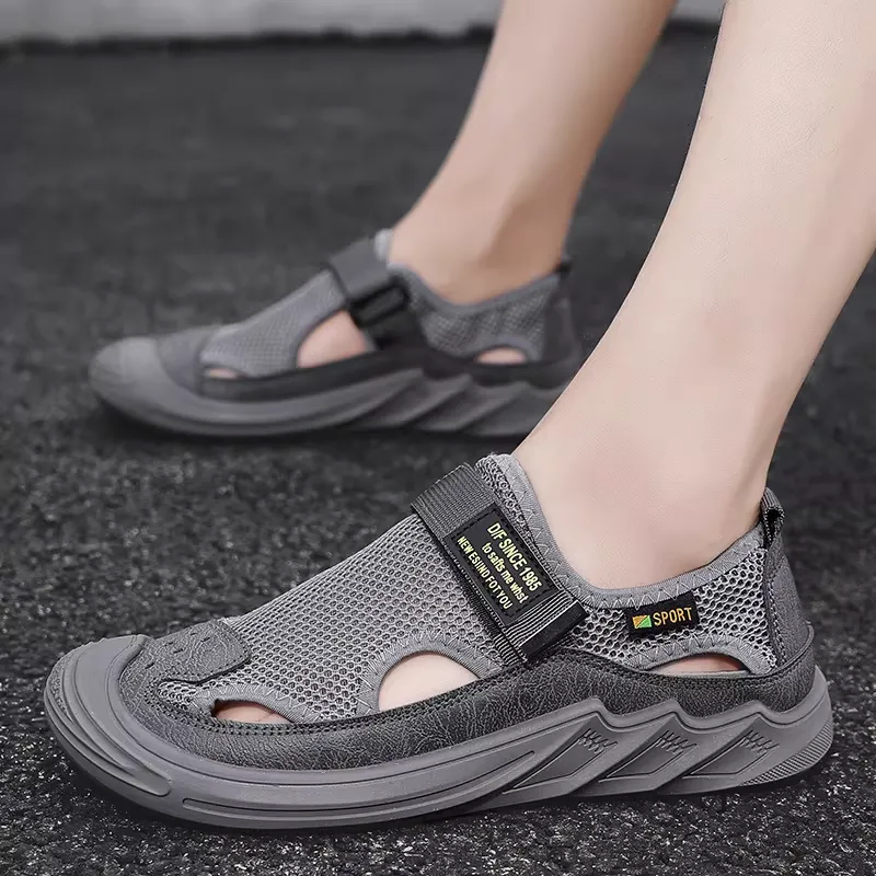 Men Sandals Men's Summer New Genuine Leather Mesh Casual Beach Shoes Mesh Breathable Soft Sole Crocs Men's