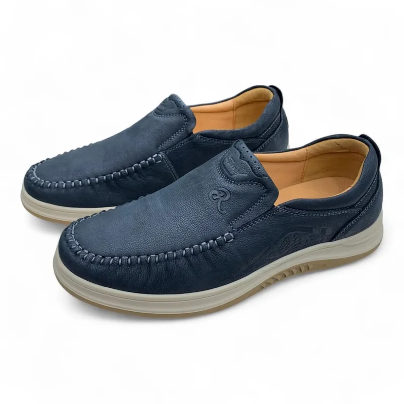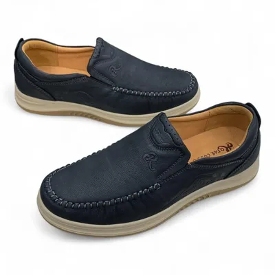 Step into style and comfort with these classic slip-on shoes. The rich, navy leather upper offers a sophisticated look and feel, while the durable rubber sole provides excellent traction and support. The slip-on design makes them easy to wear, and the comfortable insole ensures all-day comfort.