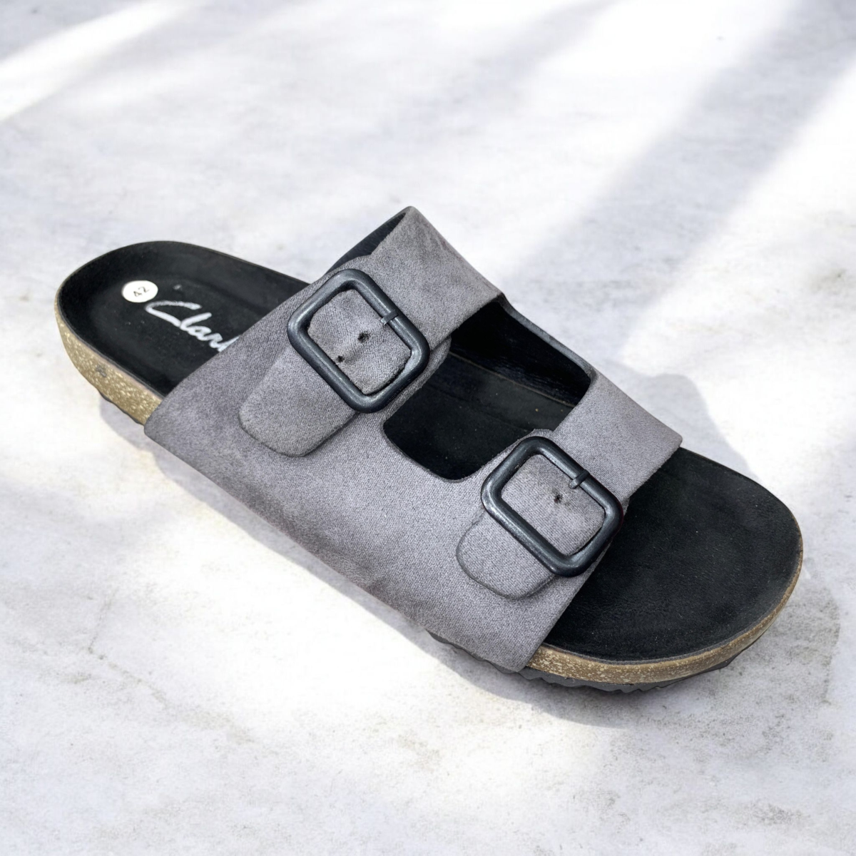 Cork-style cushioned sole for all-day comfort