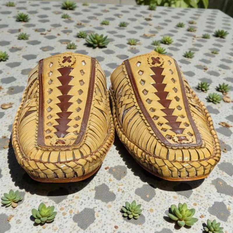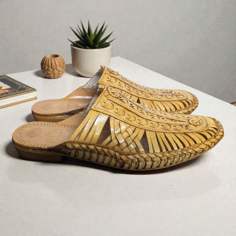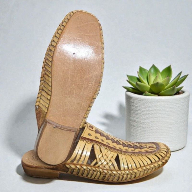 NEW ARRIVAL! Men’s Handcrafted Leather Nagra / Mojari Mules – Intricate Woven Design – Traditional Elegance
