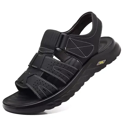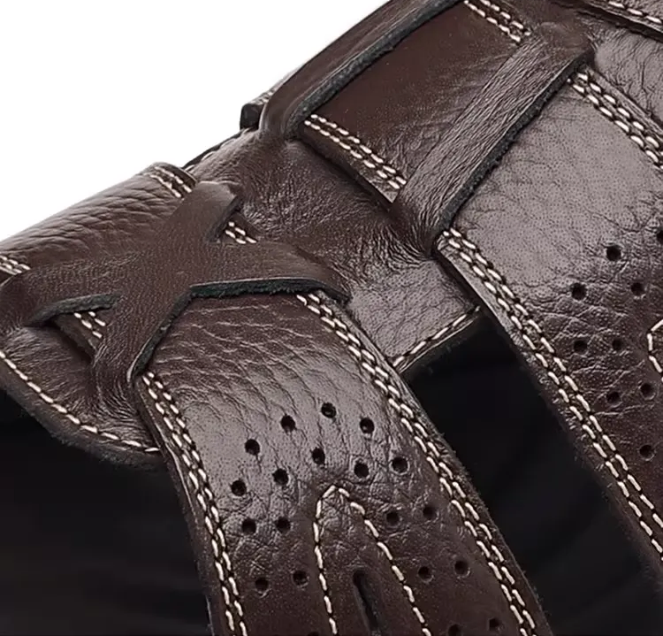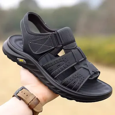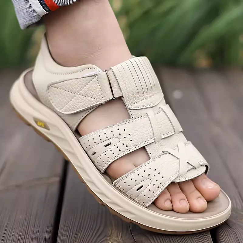New Men's Sandals Cowhide Beach Shoes Casual Platform Slippers Velcro White Men's Leather Sandals