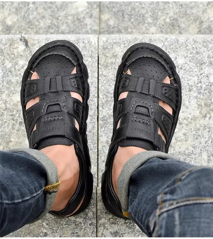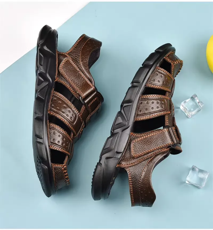 New Men's Sandals Summer Cowhide Beach Summer Sports Europe Station