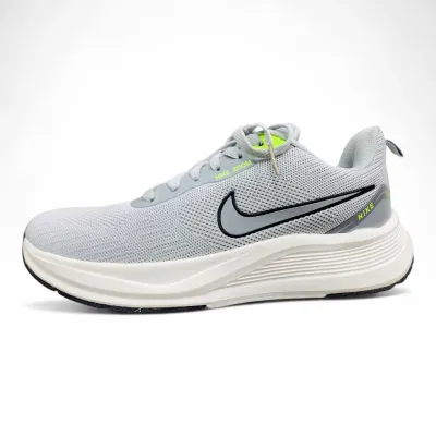 Conquer training and city miles with the Nike Zoom Running Shoe — engineered for speed, cushion, and breathable support. The green mesh upper provides lightweight ventilation while the cream swoosh and sculpted midsole deliver a clean, modern aesthetic. Zoom air units and responsive foam in the midsole return energy with every stride, while a durable rubber outsole with patterned tread ensures confident traction on road and track. Padded collar and secure lacing lock the foot in place for stability during interval sprints or long runs. Built-in heel and forefoot support reduce fatigue and improve ride consistency. Available in multiple sizes with authentic branding and quality assurance, this Nike Zoom model balances race-ready performance with everyday comfort for runners and active commuters alike.