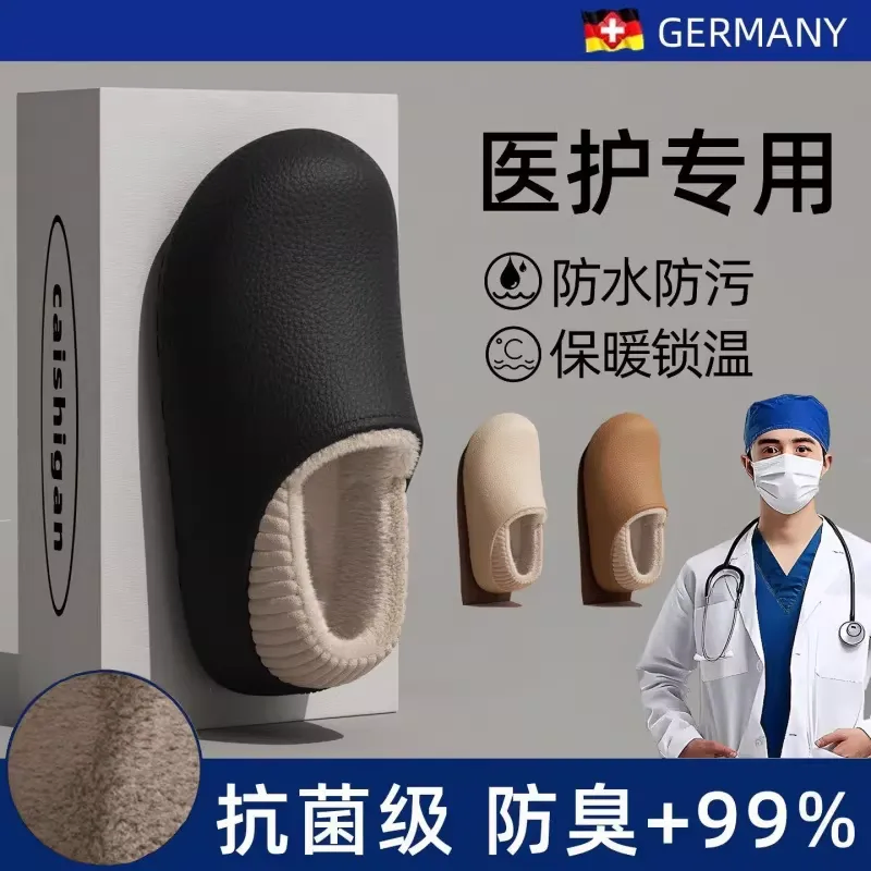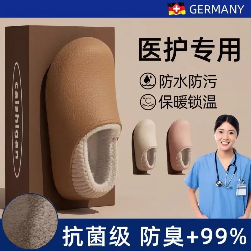 Operating Room Waterproof Cotton Slippers for Women to Wear in Winter Fleece-Lined to Heattech Thick-Soled Home Non-Slip