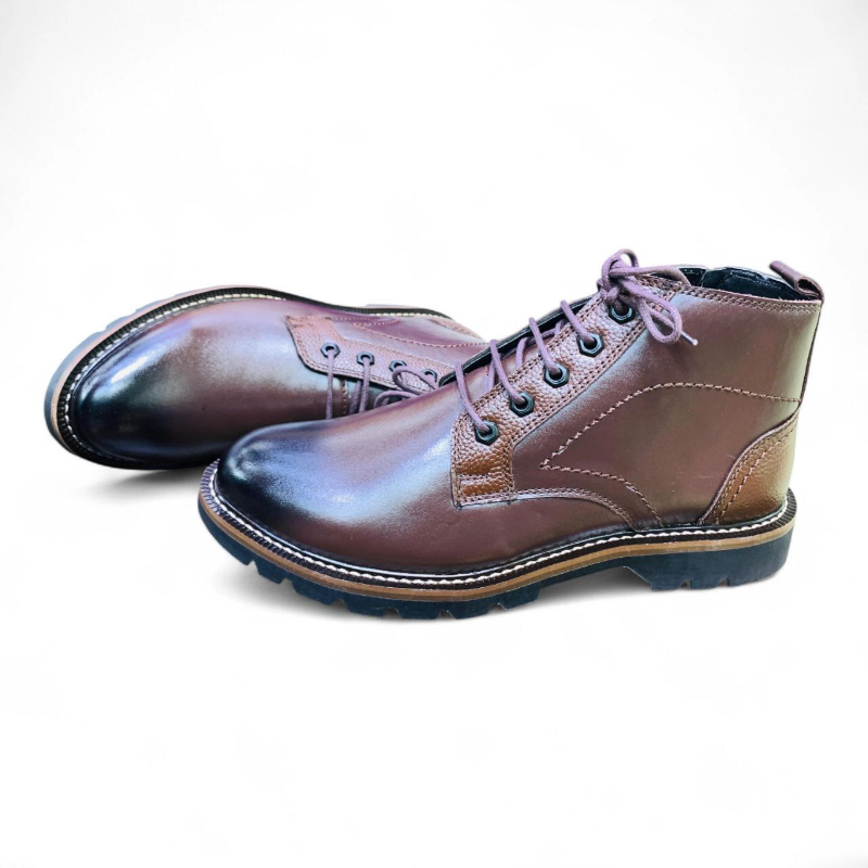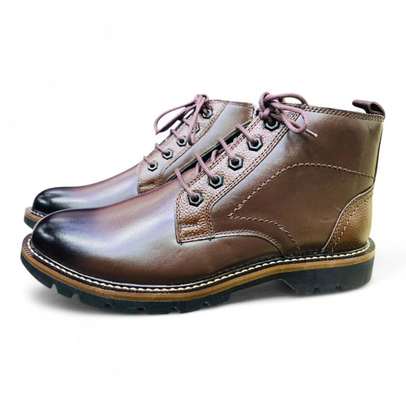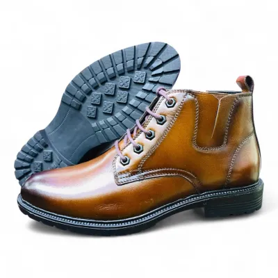 Elevate your wardrobe with Footmax Brown Leather Ankle Boots — expertly crafted for style, durability, and everyday traction. These boots feature a polished full-grain leather upper with precise stitching and a classic five-eyelet lace-up for a refined, secure fit. The cushioned anatomical insole and memory-foam layer deliver all-day comfort while the rugged black rubber outsole with cross-shaped grips provides confident traction on wet or uneven surfaces. Subtle gloss finish and reinforced seams reflect premium workmanship suited for city commutes, weekend outings, or smart-casual looks. Ethically sourced materials and strict quality control ensure long-lasting wear. Available in multiple sizes with fast local delivery across Bangladesh, easy returns, and attentive customer support. Make these ankle boots your go-to combination of style and performance.