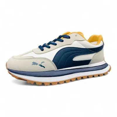 Step into bold athletic style with Footmax Puma Multicolor Sneakers — crafted for comfort, traction, and standout design. Featuring a layered upper in beige, white, and navy with a mustard yellow inner lining, this sneaker blends sporty performance with fashion-forward flair. The navy Puma stripe and logo add signature branding, while the white midsole and gum-colored outsole deliver cushioned support and rugged grip. Navy laces and stitched overlays complete the look, making this sneaker ideal for casual wear, street style, or light training. Lightweight and breathable, with a padded collar for all-day comfort. Available in multiple sizes with fast delivery across Bangladesh, easy returns, and Footmax’s trusted quality checks — your go-to sneaker for branded motion and modern edge.