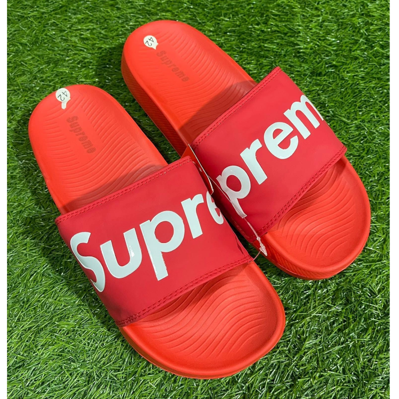 Red Black Supreme Slide Sandals Bold Logo & Textured Footbed