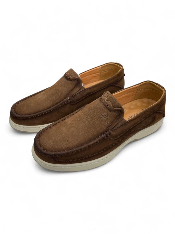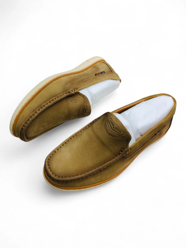 Experience handcrafted quality with Footmax Royal Cobbler Leather Slip-On Shoes — made in Vietnam using genuine leather for lasting comfort and style. These moccasin-style loafers feature detailed stitching around the toe and sides, a cushioned interior, and a textured sole for everyday grip. Embossed branding and refined design elements add a premium touch, while the slip-on silhouette ensures easy wear. Ideal for casual outings, semi-formal looks, or relaxed workdays, these shoes deliver versatile styling with durable construction. Available in rich brown, tan, and black finishes with fast delivery across Bangladesh, easy returns, and Footmax’s trusted quality checks — your go-to choice for authentic leather footwear crafted with care.