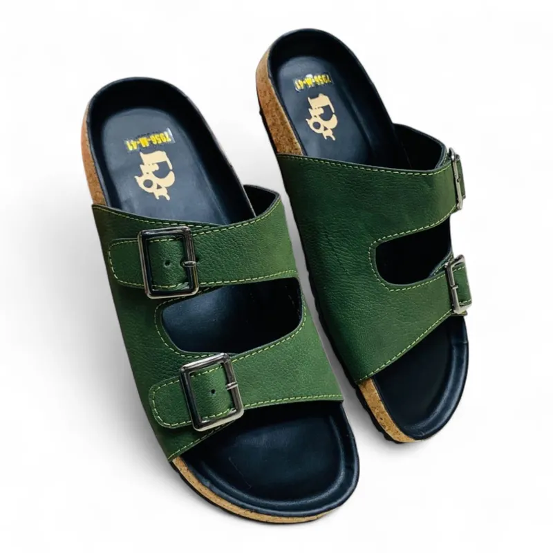 Stylish Men’s Double-Strap Sandals – Forest Green with Cork-Inspired Sole