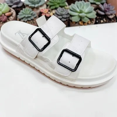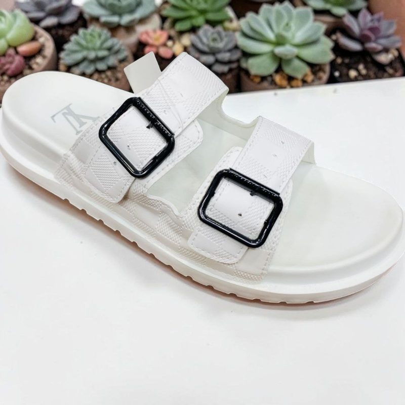 White Buckle Sandals — Checkered Texture Design